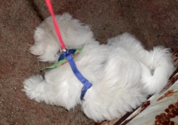 ![]() First time on a leash while still at my home in 100 Mile House. |