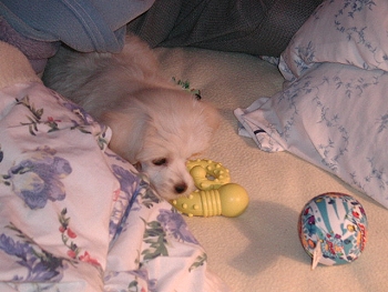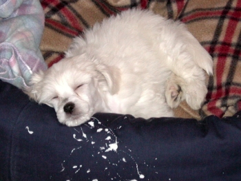 ![]() I fell sound asleep after this. Mom actually had to put me into a traveling crate as I would not settle down and she was nervous about Charlie and Sonata, who I understand are my pet cats. I had Mom up at 10:00 PM, them Midnight, 2:00AM, 4:00AM and when I wasn't awake at 6:20 AM she looked in on me and WOKE ME UP. |