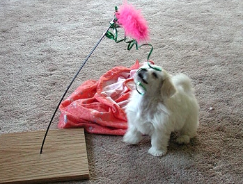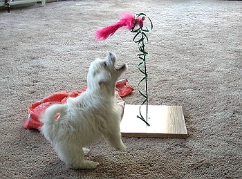 ![]() I just love the cat's play toy. I can haul it all over the frontroom! I also love the blanket Grandpa gave me. That's what I'm standing on. I drag it all over too. I'm TOUGH!!! |