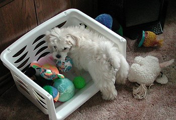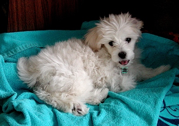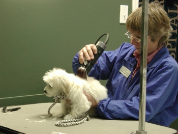The first step was to give me a nice warm bath at home. I'm not really fond of full baths; but the water is sort of fun. Then I get to cuddle in a big warm towel and Mom takes out this funny, noisy machine that blows warm air at me. I think that is funny! I try to bite the air! I understand that the lady who does doggie hair cuts also does baths; but Mom did not want to get me too stressed out or tired. This will be a real adventure for me. |
