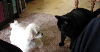 Judy continued to clip my fur with those "BIG" scissors but she was very gentle and she told me that "I was a very brave girl". Judy also clipped my toenails. My first pedicure! It wasn't to scary at all. I think that was because Judy was so nice to me. |