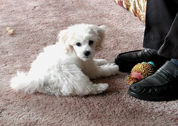 I have finally taught Mom and Dad how to play fetch. So, after playtime with Charlie was over, I took my squeaky toy to Dad and invited him to play fetch with me |