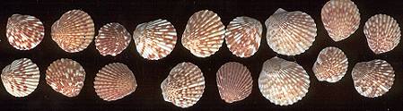 May not even be Pectens - single valves only From Hawaii Quite different in shape from those shown above 16 - 18 mm. |