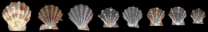 ![]() Pecten pallium (Linne, 1758) 4 specomens 14, 52 .54, 69 mm. |